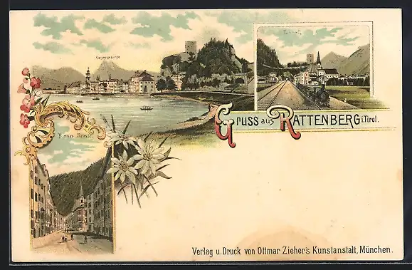 Lithographie Rattenberg, Kaisergebirge, Biener Strasse, Tunnel