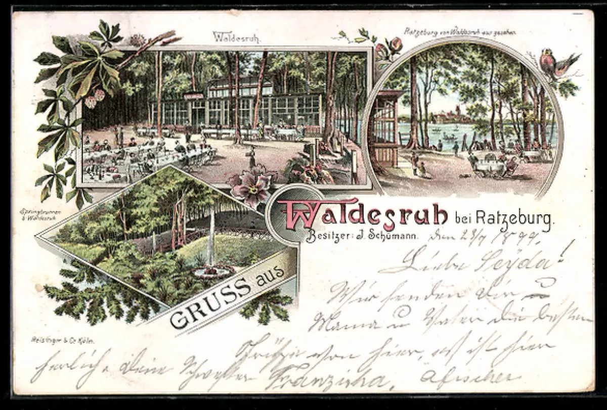 Lithographie Ratzeburg, Gasthaus Waldesruh