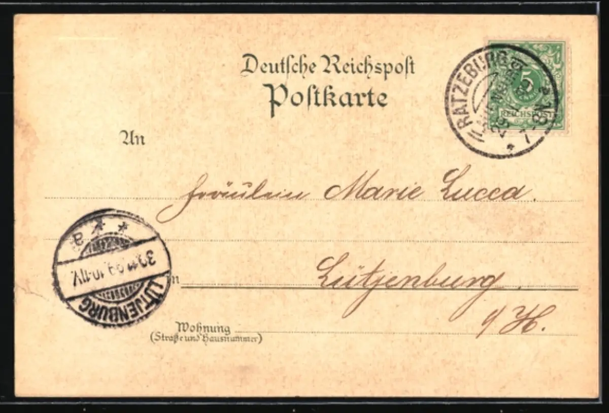 gelaufen 1899, vorderseitig Klebe- und Papierreste, Albumspuren, guter Zustand