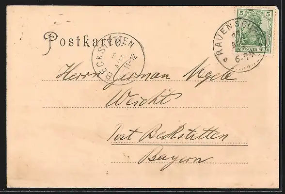 gelaufen 1903, Eckschaden li. oben, guter Zustand