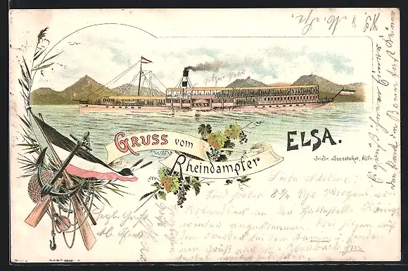 Lithographie Rheindampfer Elsa in voller Fahrt