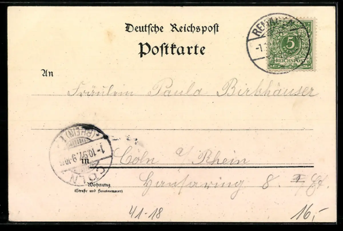 gelaufen 1897, kl. Klebereste mittig, guter Zustand