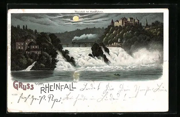 Lithographie Rheinfall, Gesamtansicht bei Vollmond