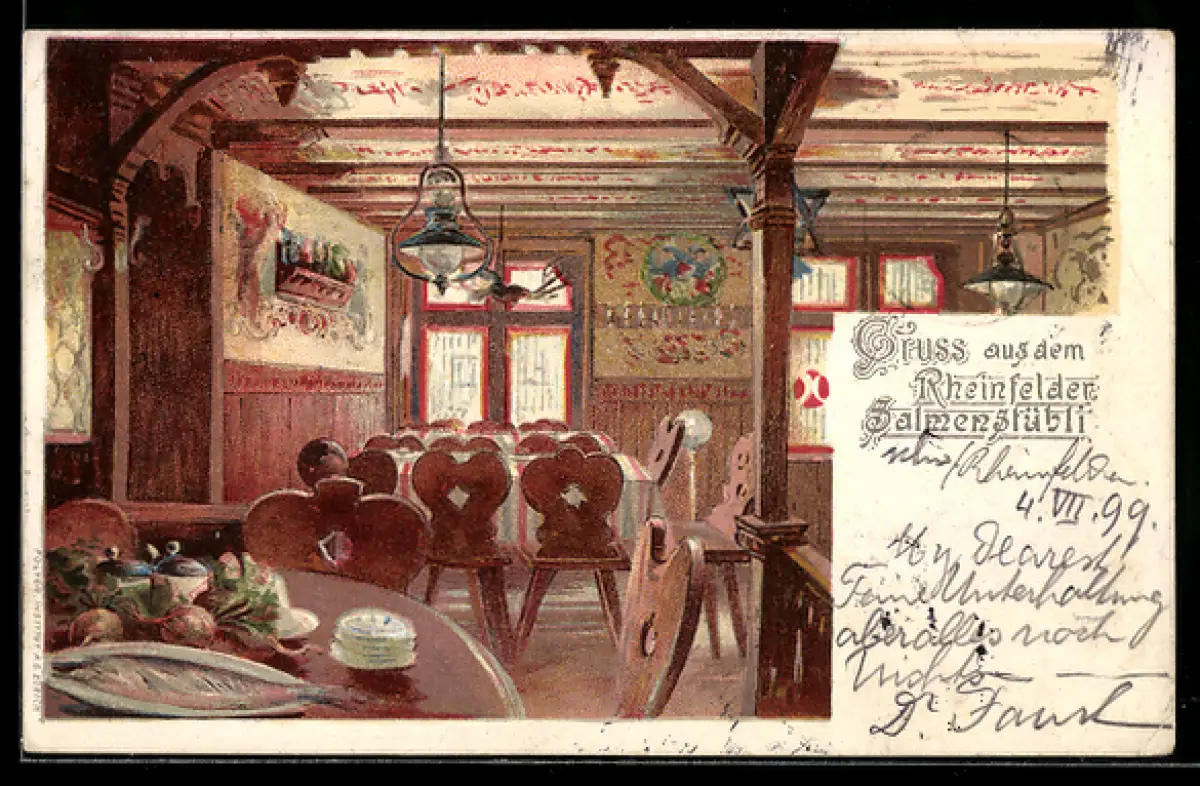 Lithographie Rheinfelden, Gasthaus Salmenstübli, Innenansicht