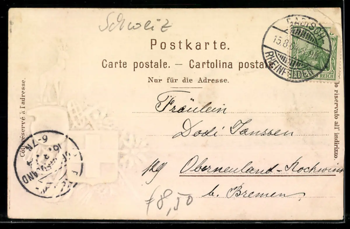 gelaufen 1904, Eckknicke li., minimaler Einriss li. unten, linke Kante beschnitten