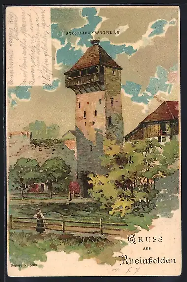 Lithographie Rheinfelden, Partie am Storchennestthurm