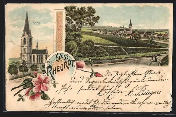Lithographie Rheurdt, Teilansicht mit Kirche