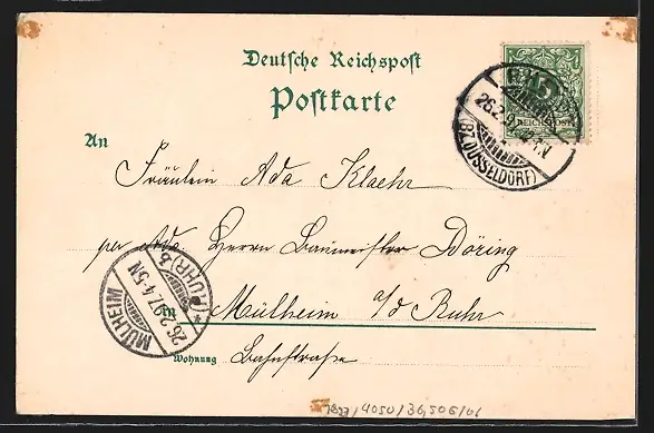 gelaufen 1897, vorderseitig Klebe- und Papierreste, guter Zustand