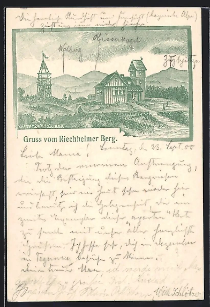 Lithographie Riechheim, Gasthaus und Aussichtsturm Riechheimer Berg