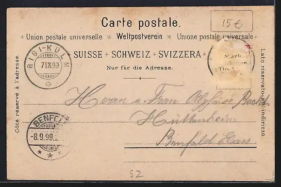gelaufen 1899, Briefmarke entfernt, guter Zustand