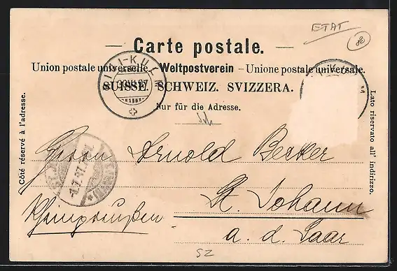 gelaufen 1897, Briefmarke entfernt, rückseitig Oberflächenschaden, guter Zustand
