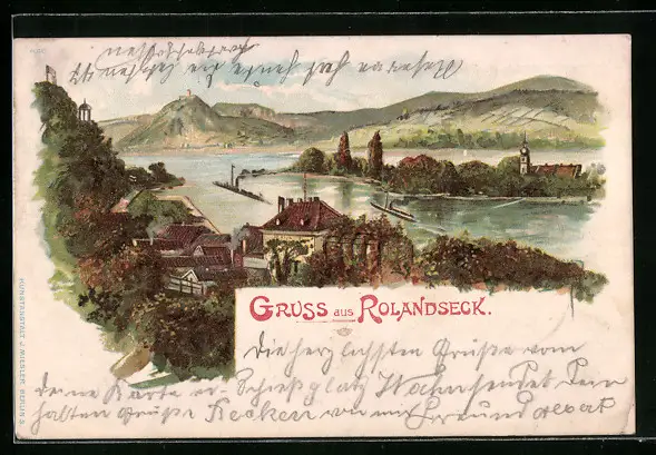 Lithographie Rolandseck, Panoramablick auf den Ort