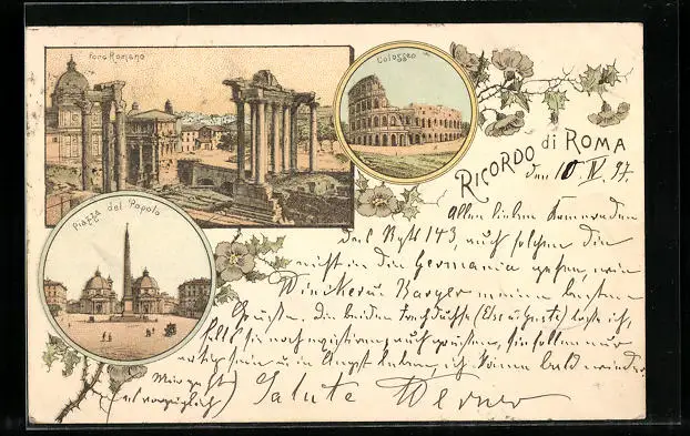 Lithographie Roma, Foro Romano, Colosseo, Piazza del Popolo