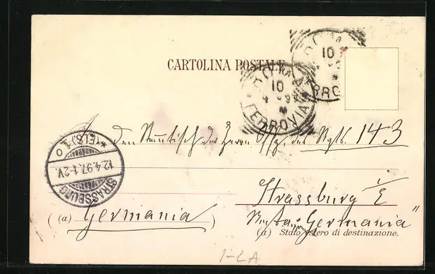 gelaufen 1897, Briefmarke entfernt, guter Zustand