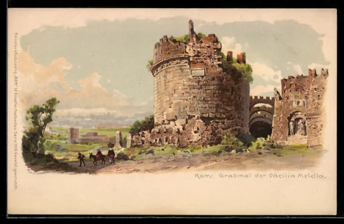 Lithographie Roma, Grabmal der Cäcilia Metella