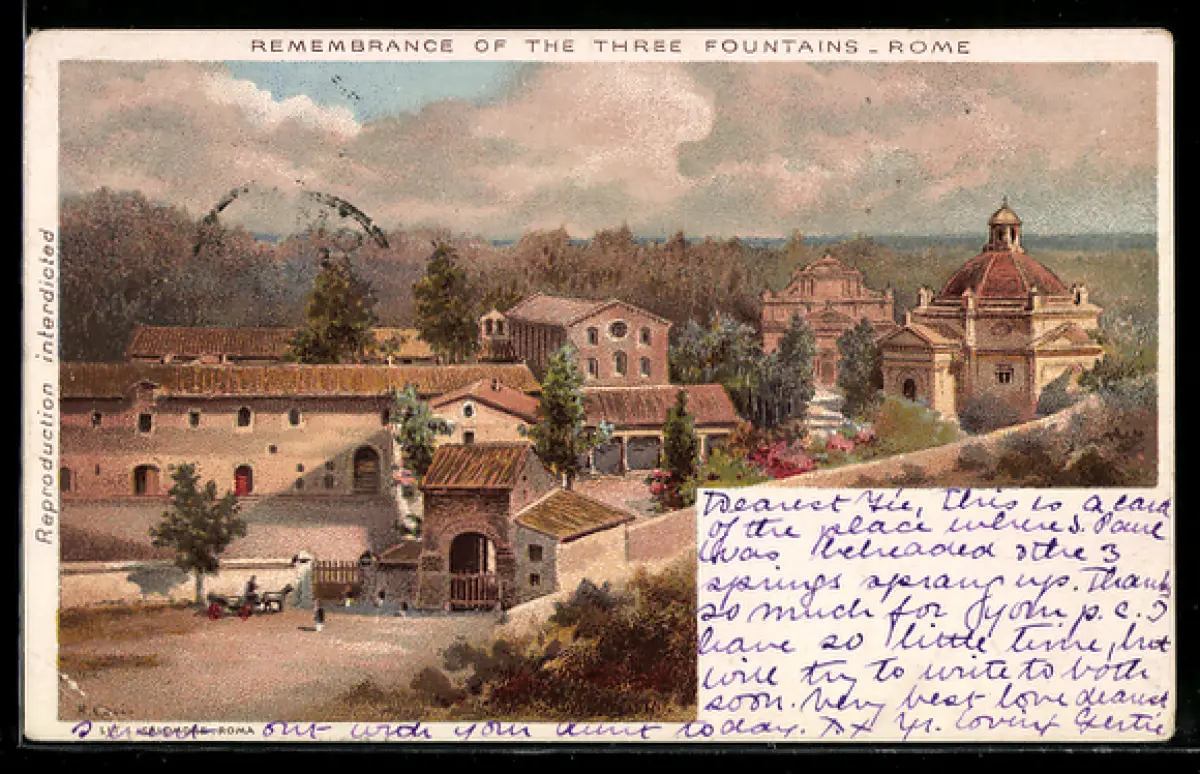 Lithographie Roma, Veduta delle Tre Fontane con edifici storici e paesaggio circostante