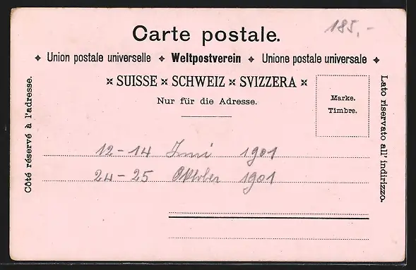 Personenbezogene Daten auf der Rückseite der Karte wurden durch blauen Textmarker unkenntlich gemacht. Die blauen Stellen sind auf die Vorderseite durchgeweicht und wirken sich negativ auf das Postkartenfoto aus