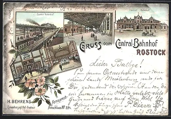 Lithographie Rostock, Central Bahnhof, Perron, Speisesaal