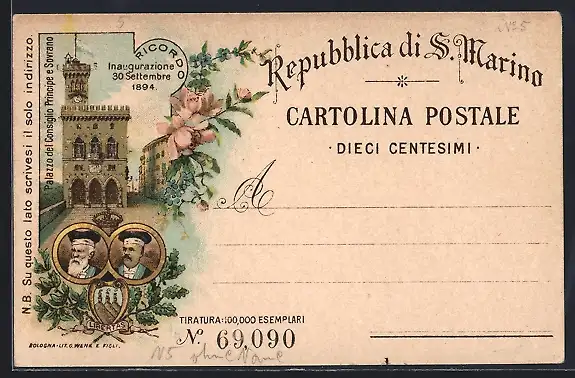 Lithographie San Marino, Inaugurazione 30 Settembre, Portraits, Blumen