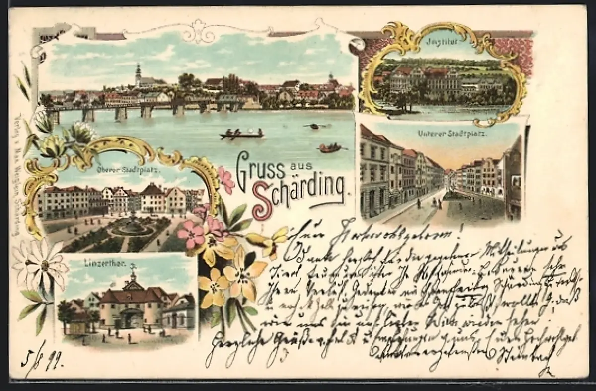 Lithographie Schärding, Linzerthor, Institut, Oberer Stadtplatz