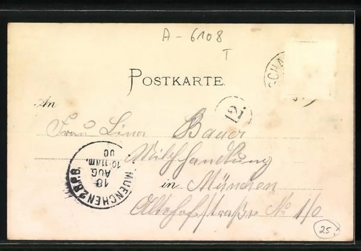 gelaufen 1900, Briefmarke entfernt, rückseitig Oberflächenschaden, guter Zustand