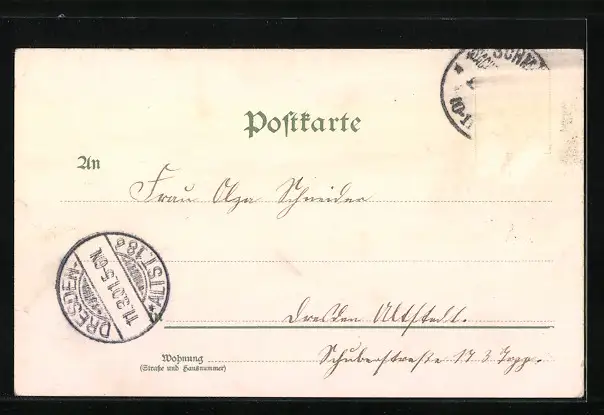 gelaufen 1901, Briefmarke entfernt, rückseitig Oberflächenschaden, guter Zustand