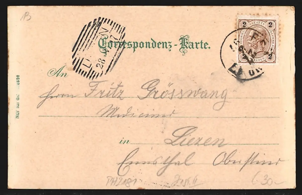 gelaufen 1897, Bugspur links oben, guter Zustand