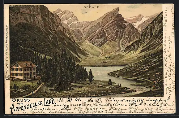 Lithographie Seealp /Appenzeller Land, Gasthaus am Bergsee