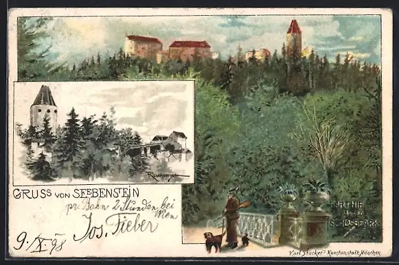 Lithographie Seebenstein, Partie aus dem Schlosspark