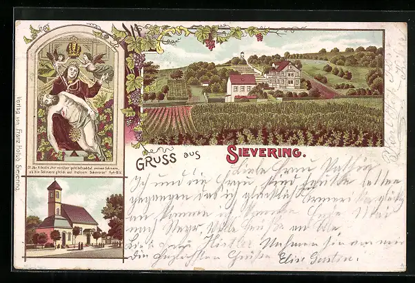 Lithographie Sievering, Die Kirche, Ortsansicht vom Feld aus, Gnadenbild