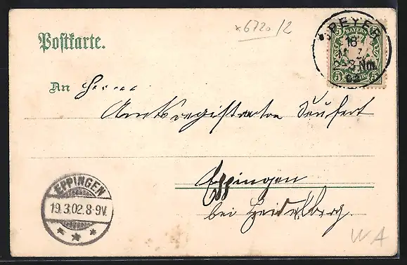 gelaufen 1902, Eckknick li. unten, Stempelspur, guter Zustand