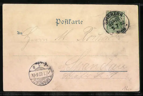 gelaufen 1902, guter Zustand