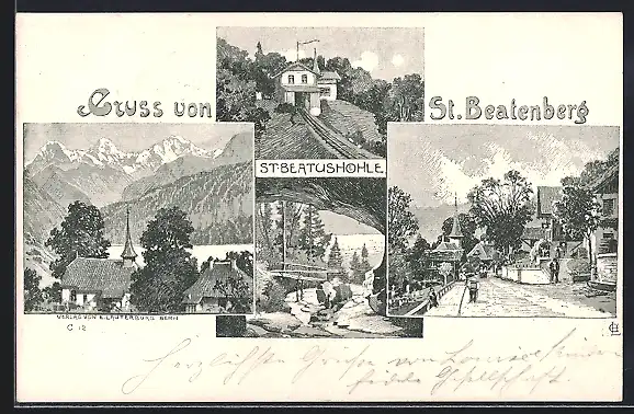 Lithographie St. Beatenberg, St. Beatushöhle, Kapelle, Tunnel