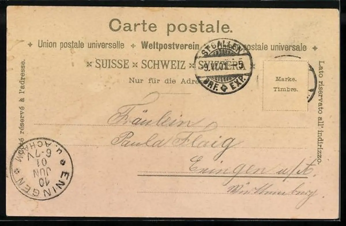 gelaufen 1901, Briefmarke entfernt, guter Zustand