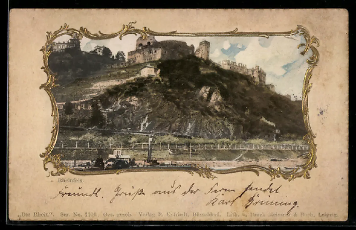 Lithographie St. Goar, Burg Rheinfels, Passepartout
