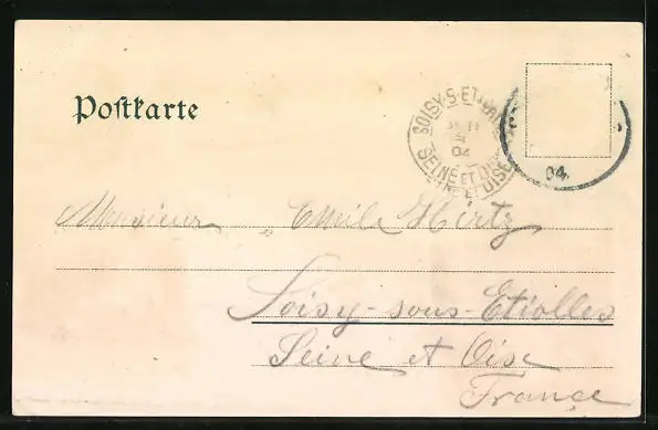 gelaufen 1904, Briefmarke entfernt, guter Zustand