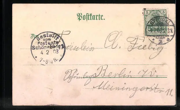 gelaufen 1903, Eckknicke li. unten u. re. oben, guter Zustand