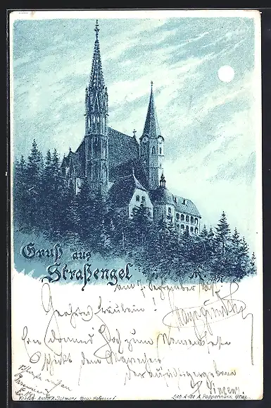 Lithographie Strassengel, Blick auf die Kirche