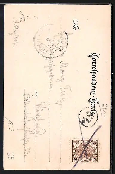 gelaufen 1897, Eckknicke re. oben und li. unten, guter Zustand