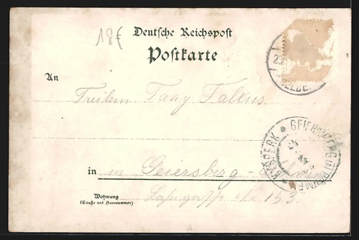 gelaufen, Briefmarke entfernt, rückseitig Oberflächenschaden, Bugspur links oben, sonst guter Zustand