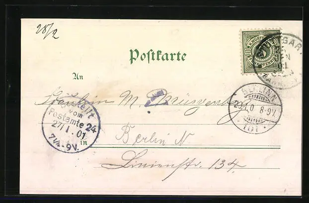 gelaufen 1901, Eckknick re. unten, guter Zustand
