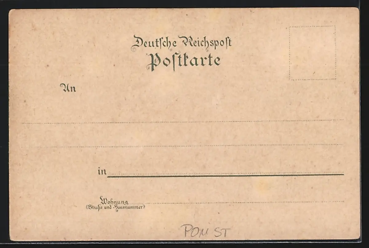 Personenbezogene Daten auf der Rückseite der Karte wurden durch blauen Textmarker unkenntlich gemacht. Die blauen Stellen sind auf die Vorderseite durchgeweicht und wirken sich negativ auf das Postkartenfoto aus