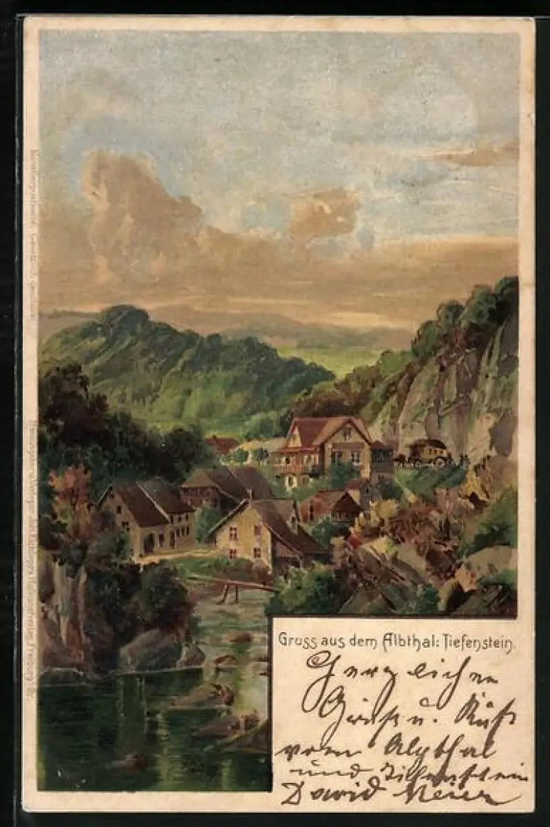 Lithographie Tiefenstein / Albthal, Ortsansicht