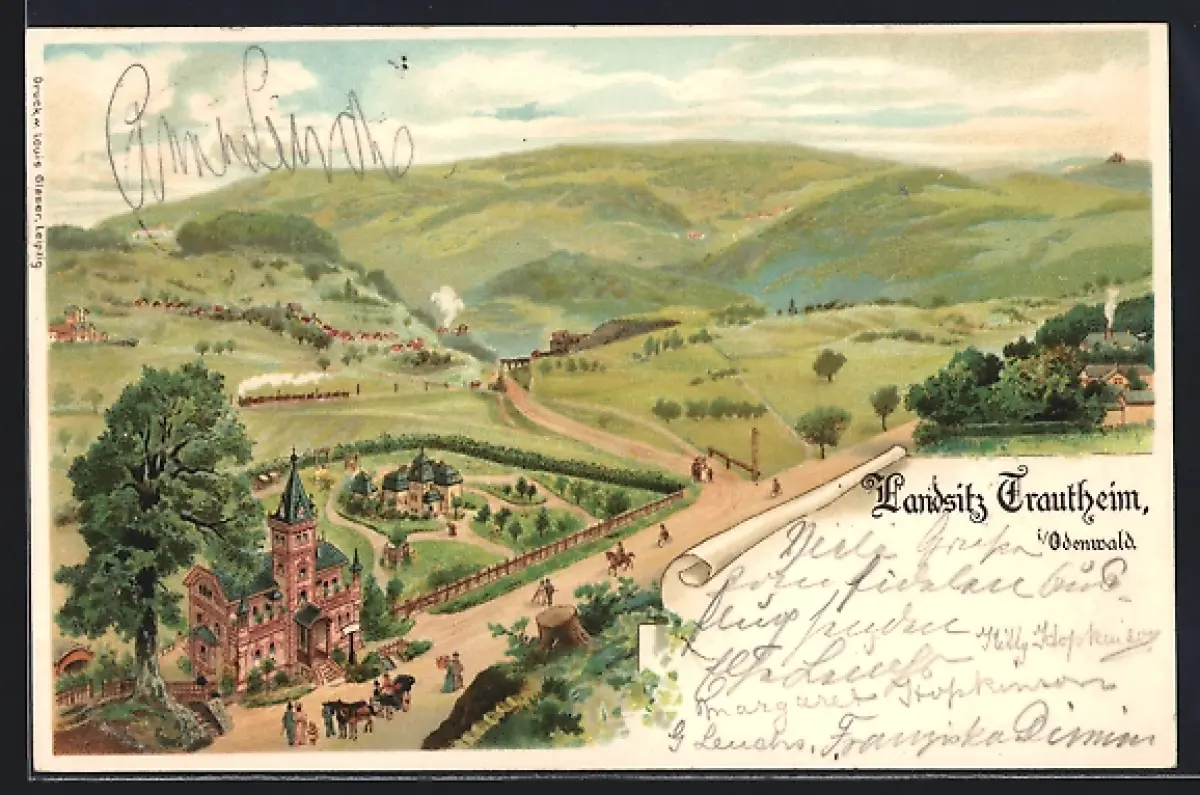 Lithographie Trautheim i. / Odenwald, Landsitz Trautheim