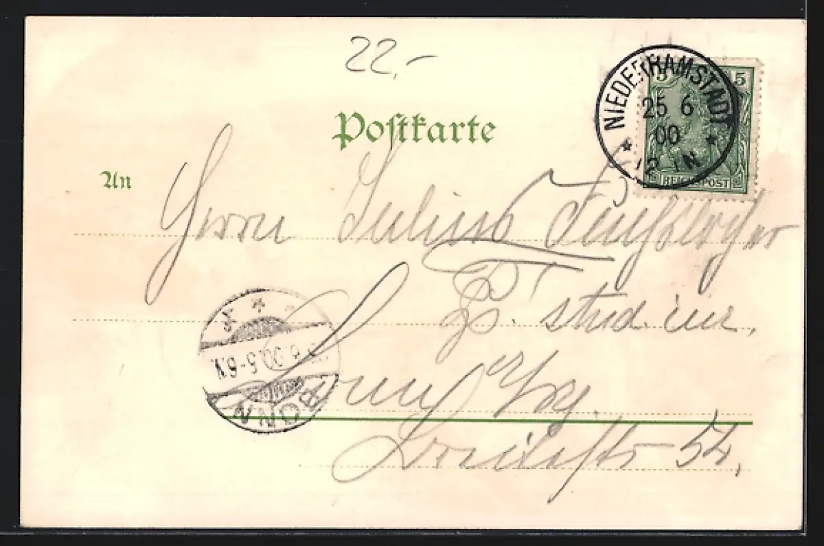 gelaufen 1900, Rand leicht beschnitten, guter Zustand