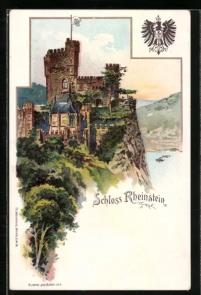Lithographie Trechtingshausen, Schloss Rheinstein
