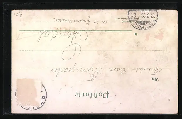 gelaufen 1900, Briefmarke entfernt, rückseitig Oberflächenschaden, Stempelspur, Abriebspur li. oben, guter Zustand
