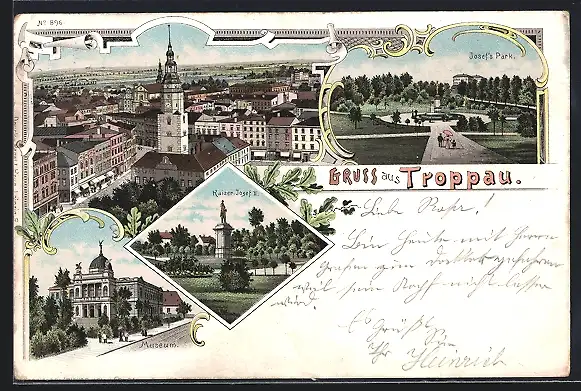 Lithographie Troppau, Museum, Josef`s Park, Denkmal Kaiser Josef II.