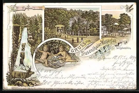 Lithographie Trusetal, Gasthof Trusenthaler Wasserfall