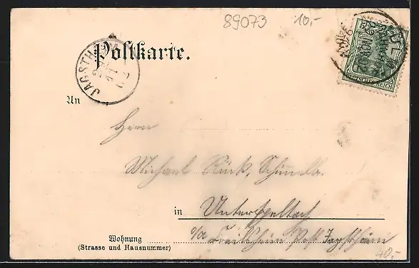 gelaufen 1902, Eckknicke oben, kl. Enriss re. unten, guter Zustand